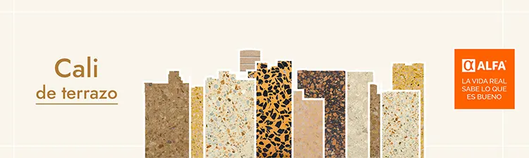 Imagínate nuestros pisos de terrazo en tus proyectos. Sus texturas y formas. Su durabilidad y fácil mantenimiento. Consulta todo nuestro portafolio en alfa.com.co y solicita ya tu asesoría personalizada con nuestras Soluciones Especializadas.