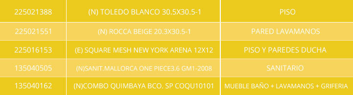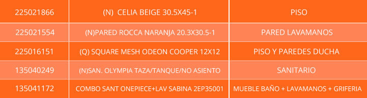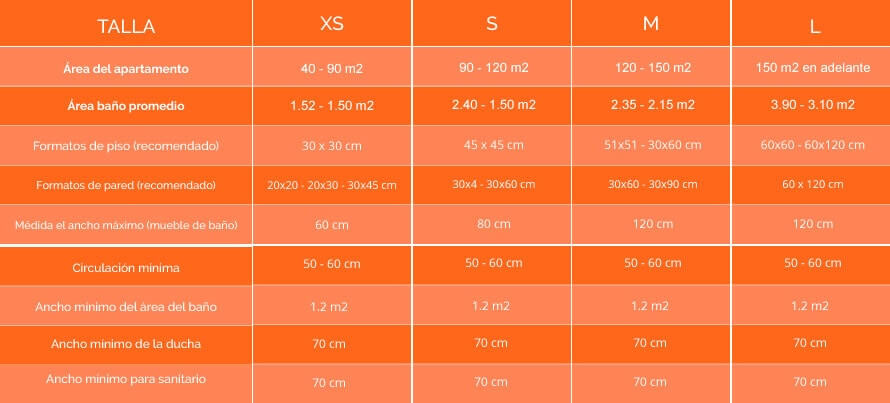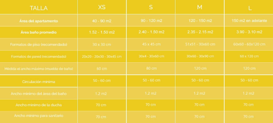 Te presentamos un cuadro guía para que identifiques la talla del baño de tu casa.