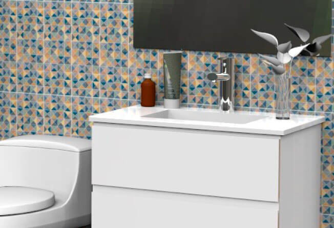 Para espacios pequeños te aconsejamos el uso de formatos pequeños para evitar dificultades en los desagües de ducha y sifones, la mejor opción para el piso es usar un formato 30 x 30 cms, para las paredes puedes usar formatos pequeños y que a su vez son tendencia como 20 x 20, 20 x 30 o 30 x 45 cms.