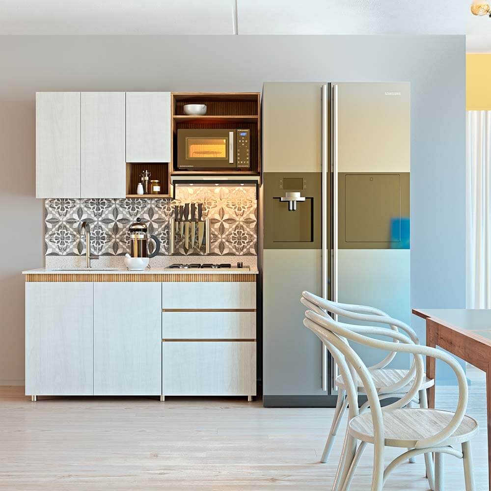 Así mismo, recomendamos instalar iluminación como balas de piso o techo que son ideales para cocinas integrales y cajones de almacenamiento.