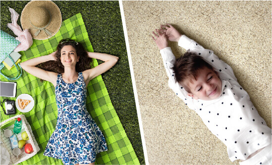 Elaboradas en una amplia gama de colores, texturas, fibras y colores, que van desde los más claros hasta los más oscuros. Ideales para interiores, por la suavidad al contacto con los pies. Eliminan el ruido de las pisadas y el taconeo. Conservan la temperatura ambiente. Son de fácil fabricación, instalación, cambio y mantenimiento. Y lo mejor es que no producen alergias. La grama sintética se utiliza en espacios deportivos o para usar en balcones y terrazas.