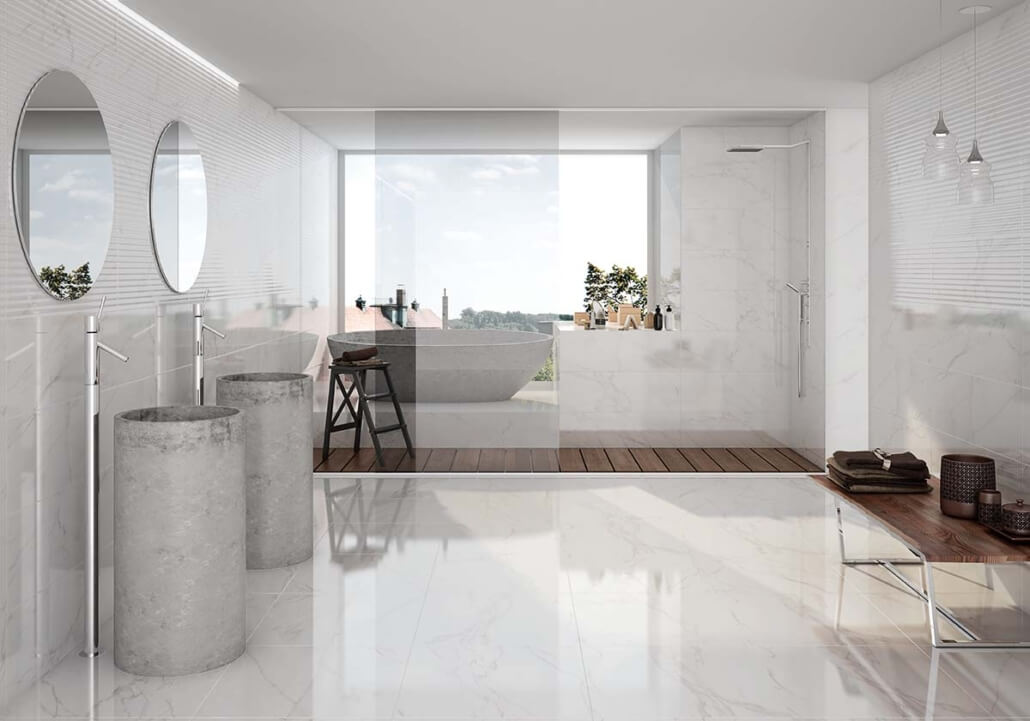Nuestro porcelanato para pisos de gran formato que quieren aportar un estilo de lujo a tus espacios, utilizando texturas cementicias y de mármol para dar confort y resaltar la esencia del minimalismo natural.